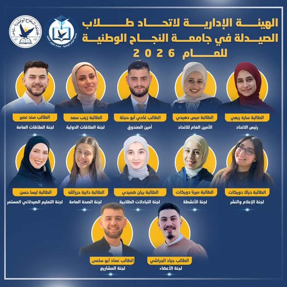 - الاسم الرسمي للهيئة: Pharmaceutical Students’ Federation – An-Najah National University
